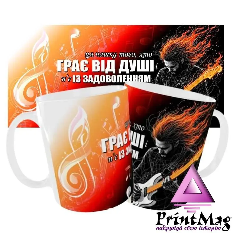 Чашка для гітариста – це не просто ємність для улюбленої кави або чаю, а справжній аксесуар, який підкреслює індивідуальність і захоплення музиканта. Чашка з гітарою стане чудовим подарунком для будь-якого гітариста. Вона ідеальна для того, щоб насолодитися ранковою кавою перед початком репетицій або вечірнім чаєм після насиченого дня. Хочете здивувати близьку людину? Замовте чашку з оригінальним і пам\'ятним написом або картинкою.