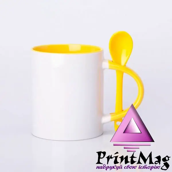 ЧАШКА СУБЛІМАЦІЙНА КОЛЬОРОВА ВСЕРЕДИНІ З ЛОЖКОЮ ЖОВТА