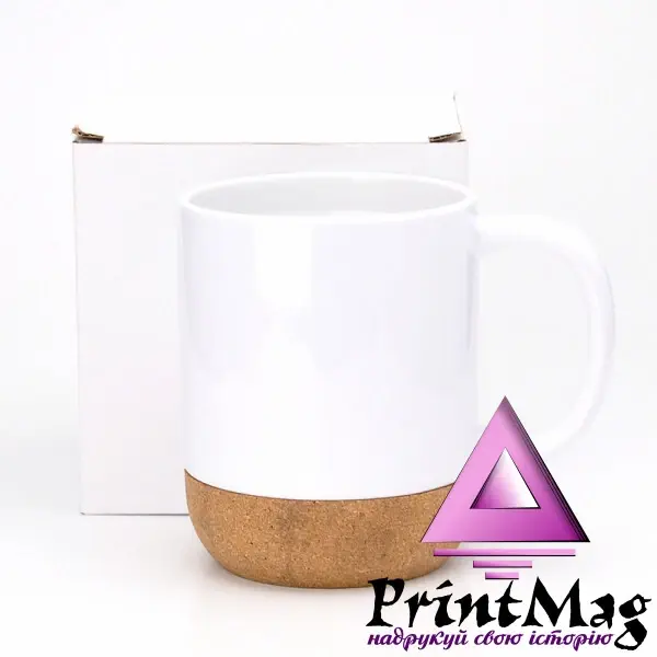 ЧАШКА ДЛЯ СУБЛІМАЦІЇ БІЛА 400мл НА ПРОБКОВІЙ ОСНОВІ