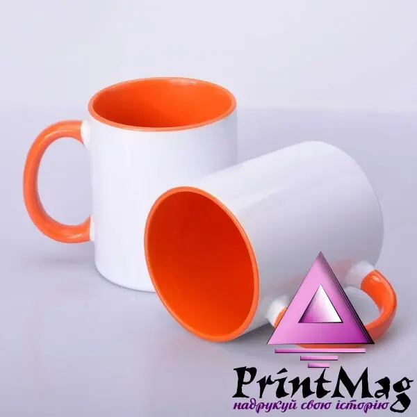ЧАШКА СУБЛІМАЦІЙНА КОЛЬОРОВА ВСЕРЕДИНІ І РУЧКА (ПОМАРАНЧОВА)