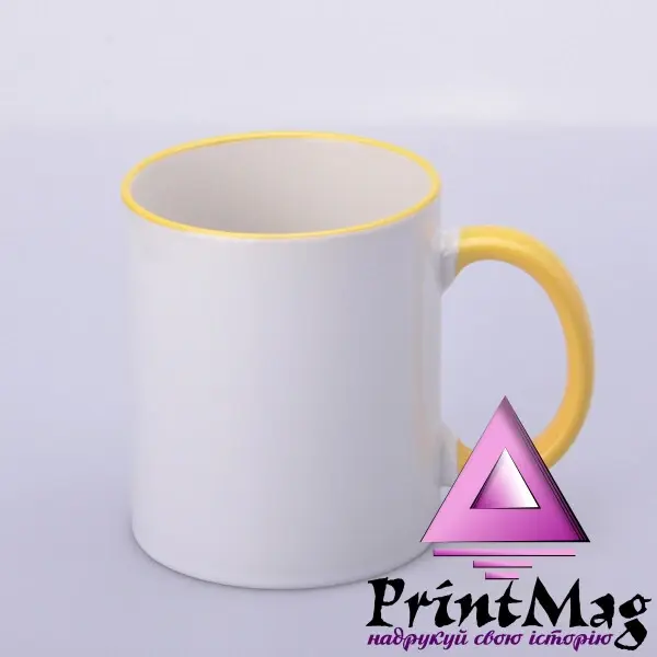 ЧАШКА СУБЛІМАЦІЙНА КОЛЬОРОВИЙ ОБІДОК І РУЧКА (ЖОВТА)